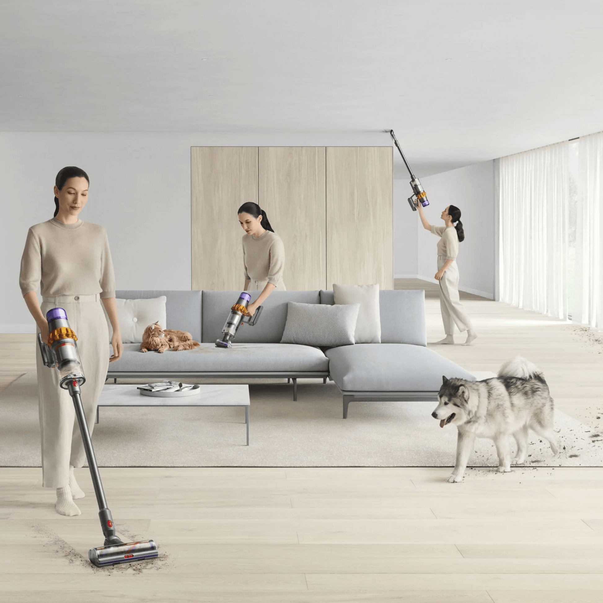 A versatilidade da tecnologia sem fio Dyson facilita a limpeza da sua casa. Limpeza poderosa de pisos, locais de difícil acesso e colchões.